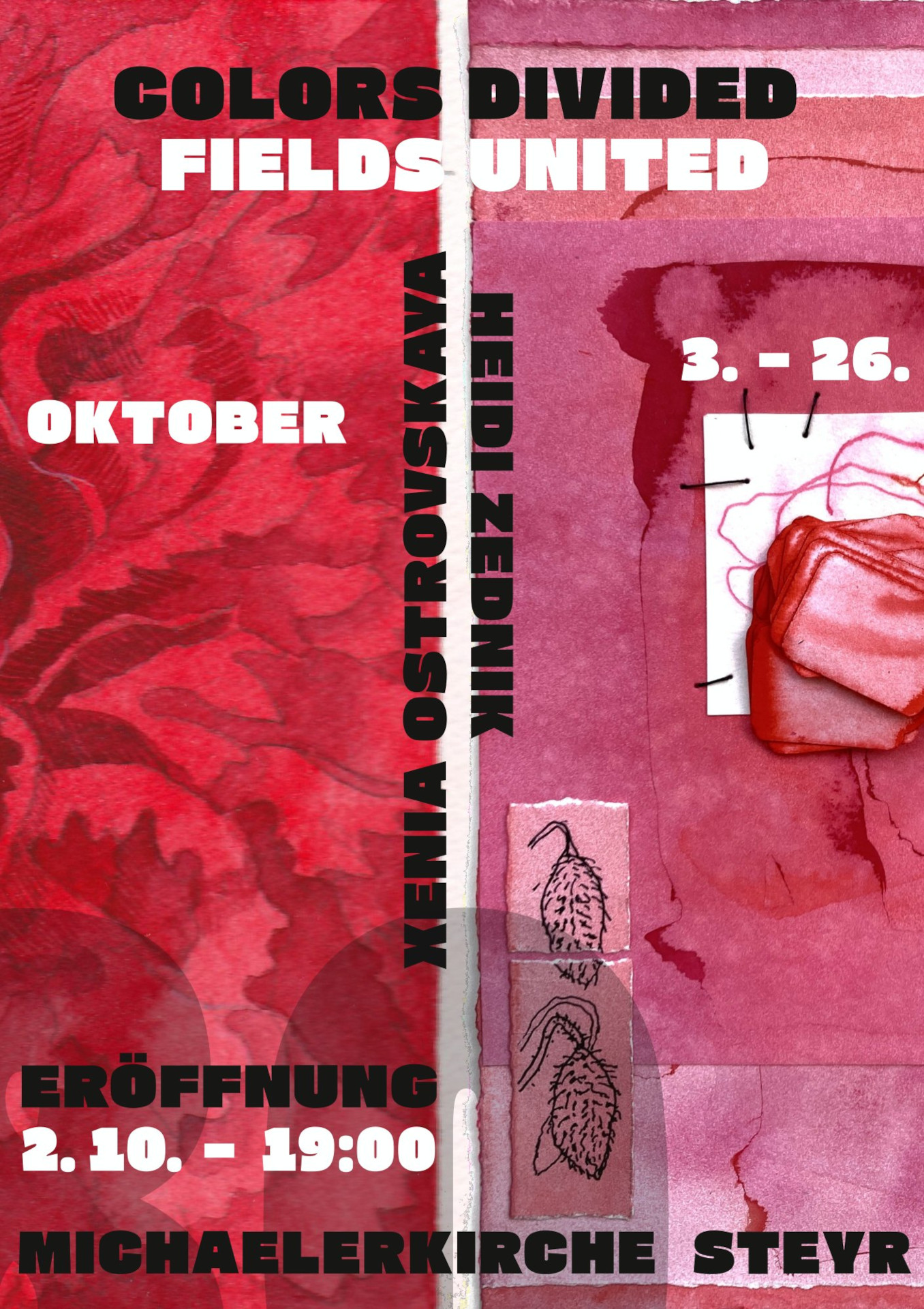 02.10.2025 "COLORS DIVIDED. FIELDS UNITED"; Heidi Zednik & Xenia Ostrovskaya Steyr St.Michael; Vernissage: 02.10, 19:00 Ausstellungsdauer: 03.10 - 26.10.2025